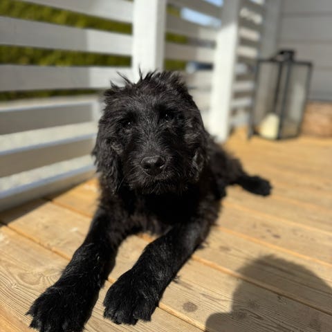 En eldgammel arbeidsrase som i utseende er lignende doodle, goldendoodle, labradoodle, cobberdog eller cockapoo.