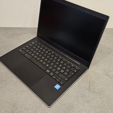 Dette er en Chromebook, den har 4 RAM og 32/64 GB minne, den fungerer som den skal, den er i god stand, det er noen små riper, men den er ikke brukbar. Enhver annen TPS-lader vil klare seg uten lader.