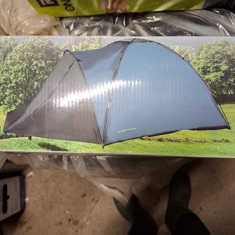 Teltet har et oppgitt mål på ca. 210 x 250 x 130 cm og en vekt på ca. 3,5 kg. Det leveres med stenger og plugger, og er egnet som enkelt camping- eller festivaltelt. Ytterduken har inngang foran, og konstruksjonen gir plass til liggeunderlag eller luftmadrasser til inntil fire personer.