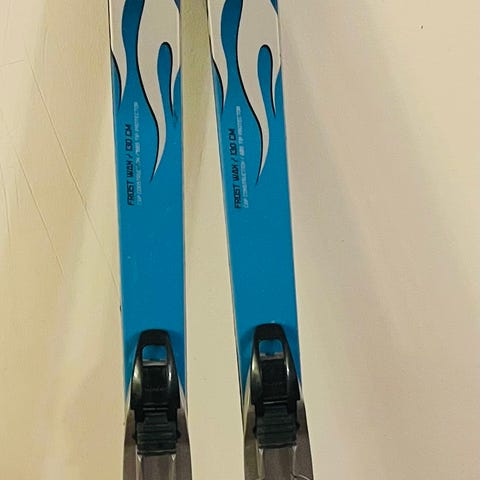 Skiene har alpinbindinger som kan enkelt justeres til passende skostørrelse.