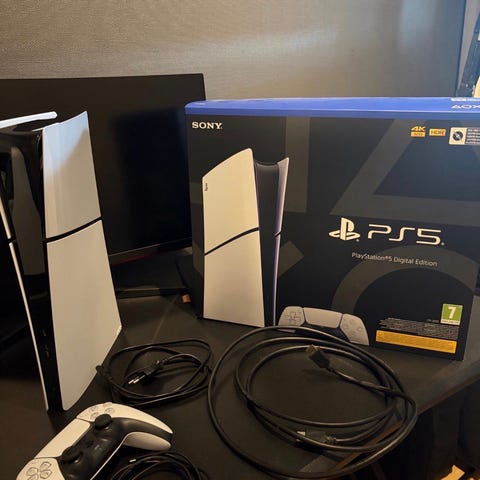 Sony Playstation 5 spillkonsoll selges i hvit farge. Den er pent brukt og i god stand. Den leveres med 1 stk tilhørende DualSense-kontroller (trådløs håndkontroller) som har innebygde funksjoner som berøringsflate osv.