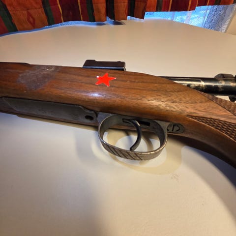 Usikker på modellbetegnelsen. Er i cal. 8x57Js (7,92) våpner ble bygd opp av børsemakerlinja på Støren under ledelse av Dag Ward) selges med demper og kikkrtsikte. Ett stødig våpen som går godt. Er du seriøst interisert så ta kontakt for bedre bilder og en prat. Kan kanskje ta innbytte i en sideligger cal 12.