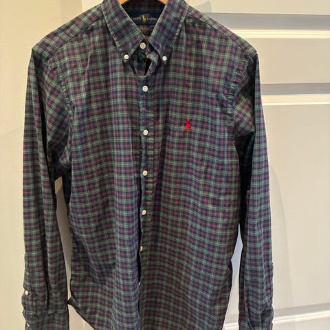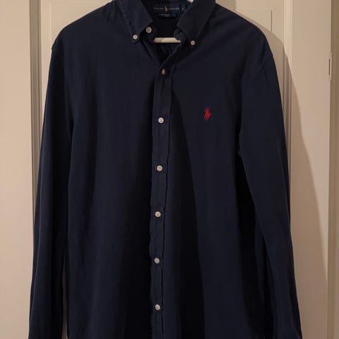 Ralph Lauren skjorte for herre i størrelse L. Skjorten er svart og laget av bomull. Klassisk modell med lange ermer og knepping foran. Passer til både hverdagsbruk og mer formelle anledninger.
