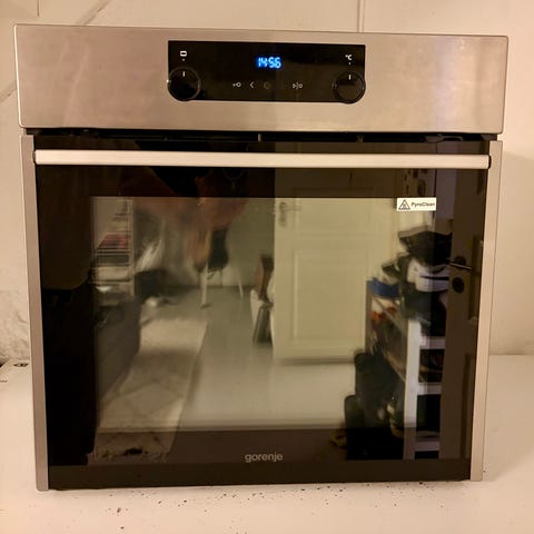 Ovnen har innebygd varmluftsfunksjon med vifte plassert bak i ovnsrommet. Fronten har stor glassdør som gir godt innsyn i ovnsrommet. Betjeningspanelet har dreieknapper og display for innstilling av temperatur og funksjoner.