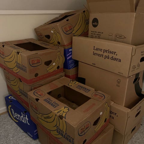 Flytteesker av blandet størrelser samt bananesker gis bort gratis mot henting