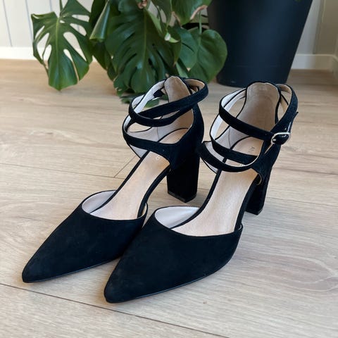 Elegante svarte heels med remmer – str 38