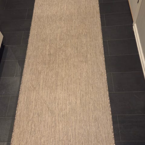 IKEA Morum gulvteppe i beige med vevd tekstur. Kan brukes både inne og utendørs. Enkelt å rengjøre. Nøytral farge og diskret mønster som passer inn i mange typer interiør.