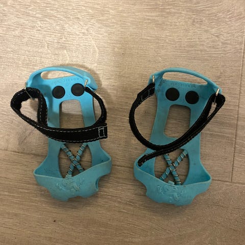 Prisen er for et par brodder str S med oppbevaringspose. Brukt max 5 ganger før de vokst ut av. Nypris 569kr