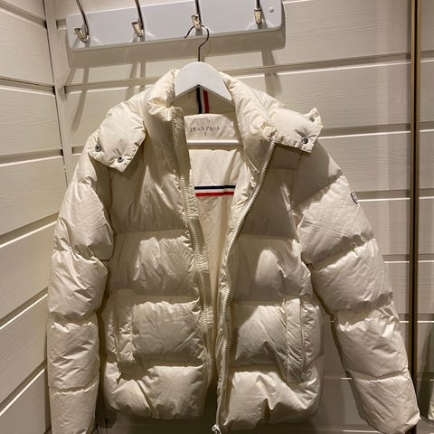 Jean Paul dunjakke for dame i størrelse S. Jakken er oransje og har lett, vattert dunfyll. Modellen har høy krage, glidelås i front og glidelåslommer i sidene. Passer som ytterjakke i overgangssesonger og milde vinterdager.