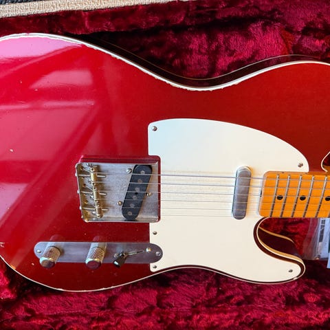 Nydelig Tele i gulnet Olympic white- mener den er produsert i sent 2016. Nye strenger (10,5) og oljet/renset gripebrett. Professional kasse med case candy følger med.
