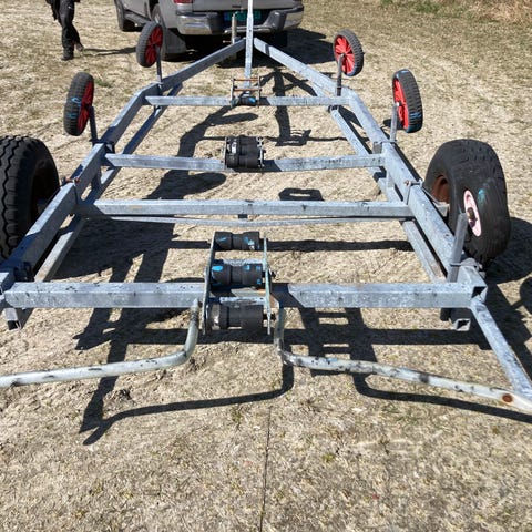 Har to akslinger som har vert brukt til opplagshenger på båt. Ene er med stålhjul og andre med dobble lastebilhjul(laget av fremakslingen til en lastebil) selges samlet for 1000kr.