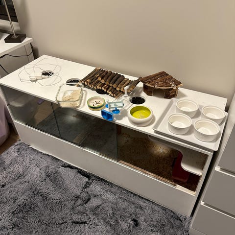 Mottok denne i posten med en liten skade på. Fikk ny tilsendt men behøvde ikke å sende tilbake den jeg opprinnelig mottok så prøver å selge den her til rabbatert pris. Sjekk bilde for skade. Buret er ubrukt. Antar at det kan limes eller lignende?