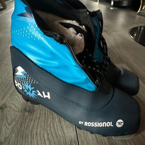 Rossignol kombi langrennsstøvler i blå og sølv. Støvlene har høy ankelstøtte med borrelåsrem og snøring under glidelås for bedre passform. Overdelen er i syntetisk materiale med forsterkninger rundt hæl og tå.