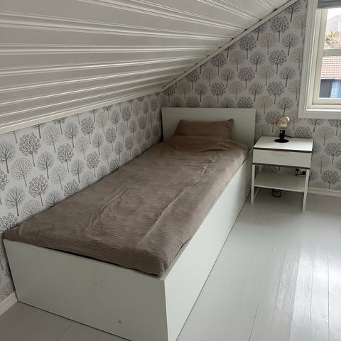 Selger en super enkeltseng med overmadrass fra Ikea. Den passer perfekt som enkeltseng på soverom, gjesterom eller barnerom. 90 x 200