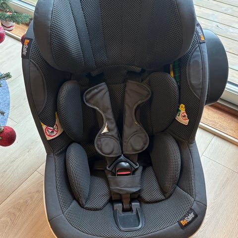 Bakovervendt bilstol til barn fra 6 mnd - 4 år. Kjøpt ny i slutten av 2021, brukt til to barn. Base følger med.