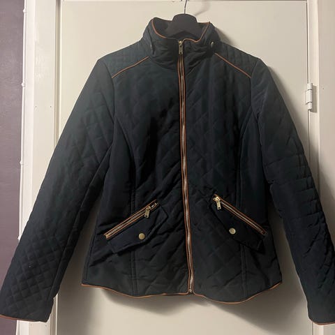H&M jakke for dame i størrelse 40. Jakken er svart og laget i polyester. Den har glidelåslukking foran, ribbestrikket kant i hals og nederkant, samt lommer i front. Passer som en lett ytterjakke til hverdagsbruk.