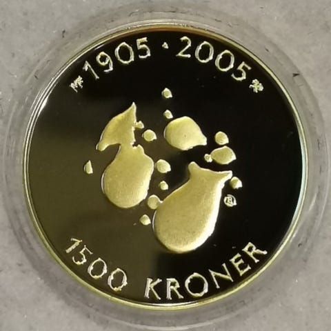Proof gullmynt, 100-årsmynt nr. 1, som representerer Norges Landbruk.