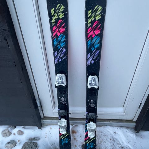 K2 Missy alpinski for junior. Str. 109cm. Twintip-ski med markant innsving, egnet til kjøring i bakke og park. Skiene har fargerikt design i lilla og rosa med turkise detaljer. Monterte alpinbindinger følger med på skiene. Passer til barn/junior som trenger et par twintip alpinski til bruk i alpinbakke.