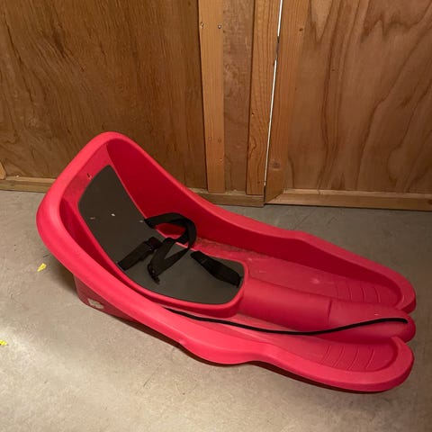 Akebrett med ratt og brems i svart og grønn farge. Egnet for barn 3+ til lek og aking på snøføre. Laget i plastmateriale tilpasset vinterbruk.