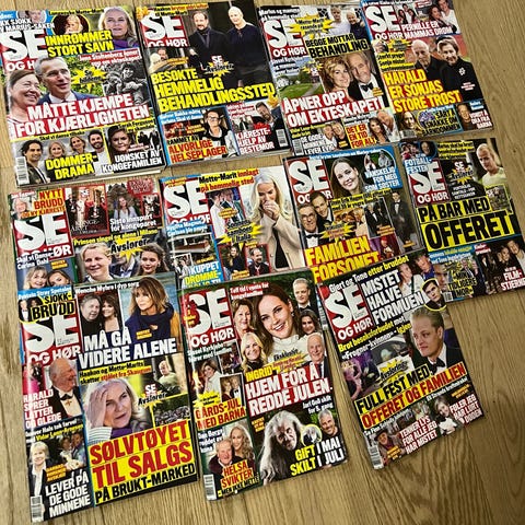 Se og Hør ukeblad samling. Pakke med flere utgaver av Se og Hør, med fargerike forsider og ulike kjendis- og nyhetssaker. Egner seg for deg som samler på ukeblader eller ønsker lesestoff. Fra 1994 nr . 40,42,45, 49 og 52. Fra 1995 nr. 4,5,12 og 16