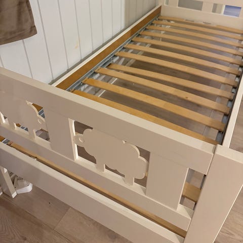 Hentes innan torsdag. Pen, fullt brukbar! Men den hadde sikkert blitt glad for litt maling :) Madrass følger ikke med.