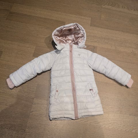 Pent brukt, lite hull bak som knapt syner. Noen små flekker. Bør kanskje has i tørketrommel etter vask for å få «fordelt» foret inni litt jevnere.