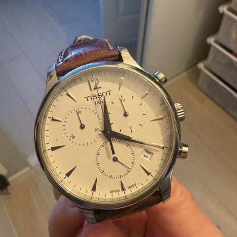 Tissot klokkerem i svart skinn. Remmen har krokodillemønstret overflate og Tissot-spenne i metall. Passer til Tissot-klokker med tilsvarende festeløsning og bredde. Egnet som erstatningsrem eller ekstrarem til hverdagsbruk og mer formelle anledninger.