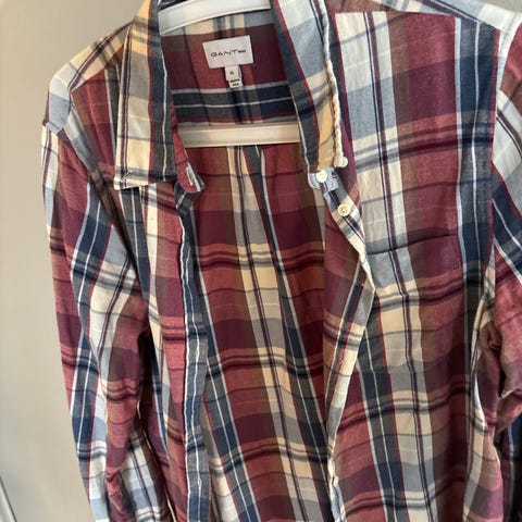 Gant poloskjorte for dame i størrelse XXL. Skjorten er blå og laget av bomull. Klassisk polosnitt med krage, kort knappestolpe med flere knapper og korte ermer. Diskré logo på brystet.
