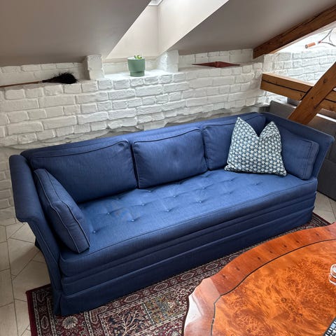 Vi gir bort vår sovesofa fra jysk. Den kan legges ned fra normal sofatilstand. Sofaen har et ben som har falt av og bør repareres (vi har latt den stå på en stabel bøker men vi har fortsatt benet som falt av!). Trenger altså litt kjærlighet men er veldig lett og grei :))