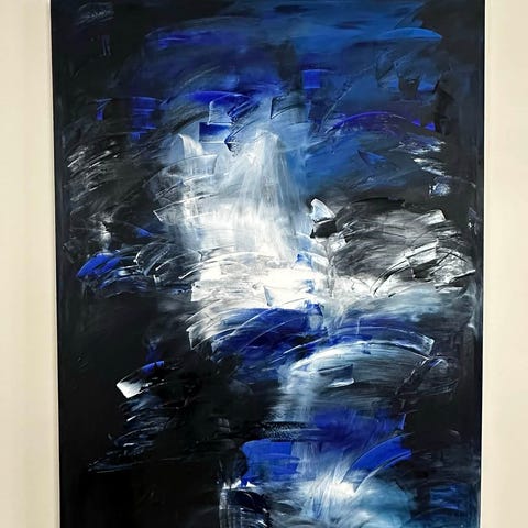 Anna Berthelsen «Vind i seilene» kunsttrykk innrammet.