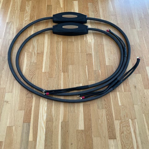 Meget god skjermet høyttaler kabel fra Chord. Spesialbestilt med lengde 3.3m. Ny pris 20990,-