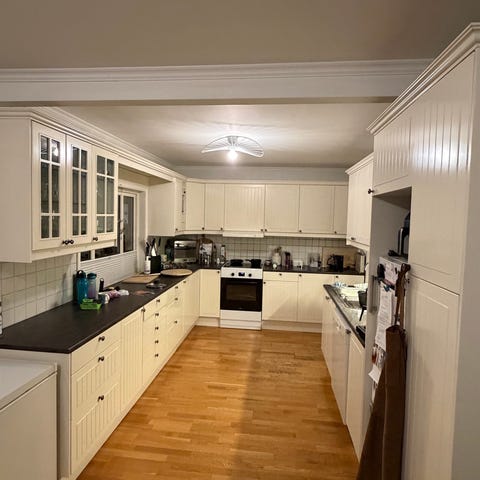 Kjøkkenet er demontert i moduler og står hente klart.