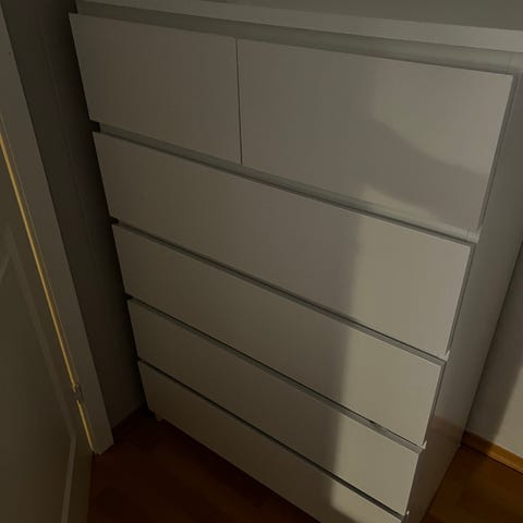 Noe svart på den ene skuffen (se bilder). Dette ser ut som misfarging fra noe annet, og kan sikkert fjernes.