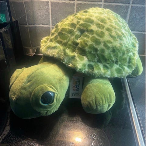 Skilpadde myk barneleke i grønn og lys grønn farge. Passer som kosedyr for barn