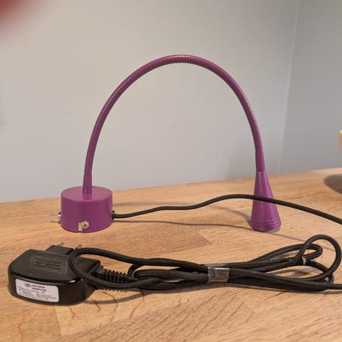 Uåpnet vegglampe eller leselampe til barnerom selges. Fargen er lys blå.