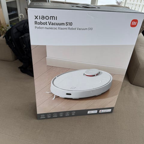 Xiaomi Robot Vacuum E10 robotstøvsuger i hvit farge. Modellen er en rund robotstøvsuger som er egnet for automatisk gulvrengjøring. Den leveres med alt tilbehør. Ladestasjon, strømadapter og avtakbar moppedel for tørr- og våtmopping av harde gulv. Original eske er også inkludert.