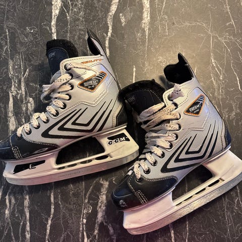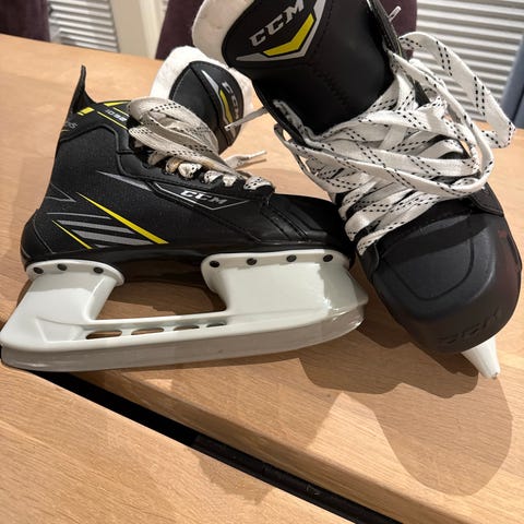 CCM ishockeyskøyter i størrelse 44. Klassiske hockeyskøyter med snøring og hvit skøytestål. Passer til ishockey og generell bruk på is, for eksempel trening og fritidsbruk på skøytebane eller islagte flater.