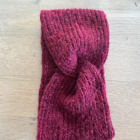 pannebånd i grønn farge for dame. Pannebåndet er strikket i australsk ull, som gir et mykt og varmt plagg egnet til bruk på kalde dager. Designet har en tvistet detalj foran som gir en tettsittende passform rundt hodet og ørene. Størrelse M passer til middels hodeomkrets. Kanskje en str mellom s/m