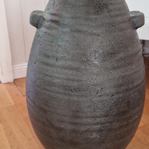 Høyde 48 cm, diameter ca 28 cm. Den har en sprekk, se bilde. Men har ingen betydning for bruk. Jeg har dessverre ikke mulighet for å sende.