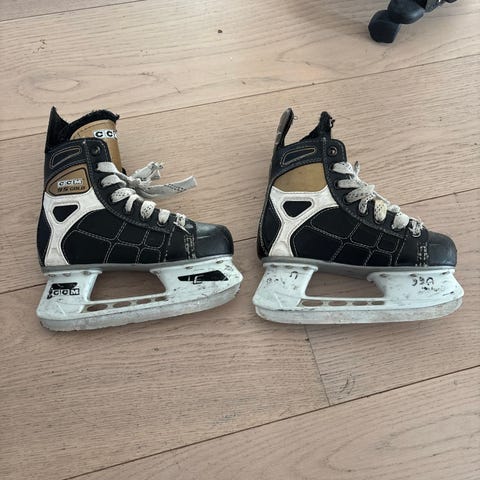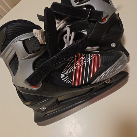 Skøyter for barn i justerbar modell. Fargekombinasjon i svart og grå med mønsterdetaljer på siden. Modellen har kombinasjon av lisser, borrelås og spennelukking for å gi bedre tilpasning rundt fot og ankel. Egner seg til bruk på isbaner og fritidsskøyting. Passer for barn som trenger et par enkle skøyter til lek og trening på is.