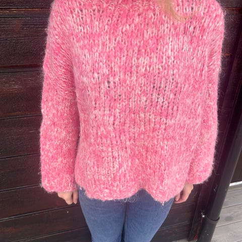 Pent brukt hjemmestrikket genser. I en nydelig rosa farge! Strikket i drops air og sandnes garn tynn silk mohair. Passer alt fra xs til m. Overvidde ca 102 cm