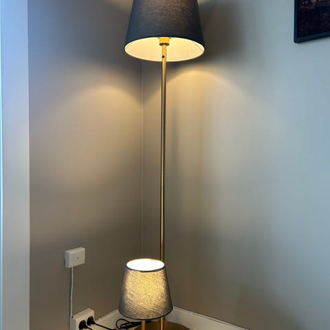 Northern gulvlampe med sort skjerm og hvitt stativ