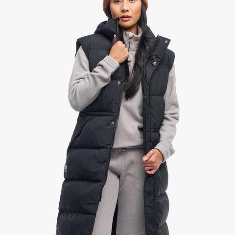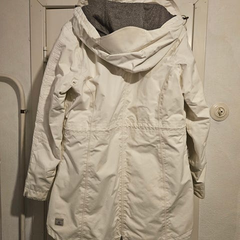 Portofino dunjakke for dame i størrelse 42. Jakken er fylt med dun og har hette med pelskant. Den har glidelås og trykknapper i front, samt lommer i sidene. Modellen er en lang jakke som dekker ned over hofter og lår, egnet som yttertøy i kaldere vær.
