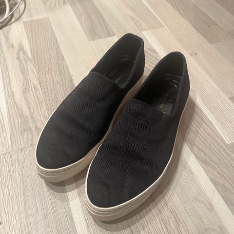 Bianco mokkasiner i størrelse 38. Skoene er i svart tekstil med hvit såle og har slip-on design uten lisser. Passer til hverdagsbruk og kan brukes både inne og ute, avhengig av behov og passform for bruker.