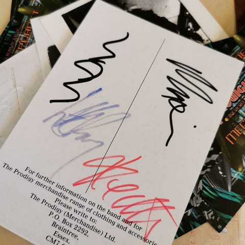 Selger signert kort av Battle beast, fra VIP pakken fra konserten i Oslo 2025. Signaturer er Noora, Juuso, Pyry, Eero, Janne og Joona.