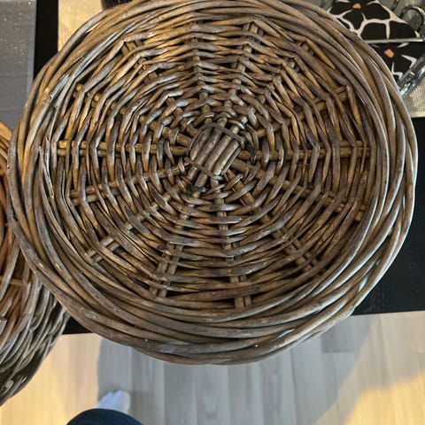Flettet kurv i rotting med to bærehanker. Kurven har rund form og åpen topp. Egnet til oppbevaring av for eksempel pledd, puter eller leker, eller som dekorasjon i interiøret. Nøytral naturfarge som passer inn i ulike rom og stiler.