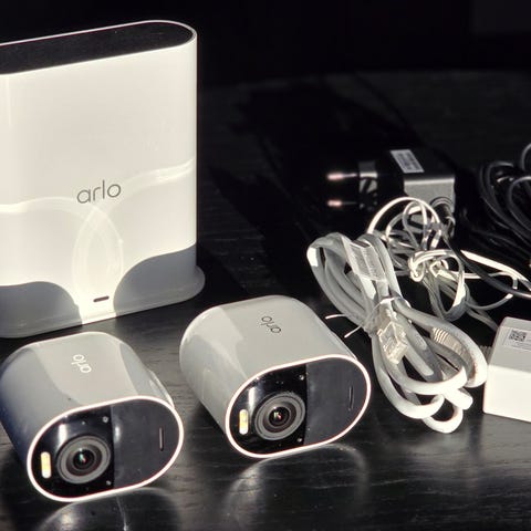 2 stk Arlo Pro kamera med diverse tilbehør selges samlet. Stikket til innendørs lader er tapet sammen, men fungerer som den skal.