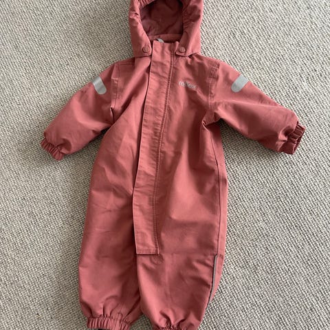 Reflex parkdress for jente i størrelse 80. Dressen er rosa og har hette, lange ermer og lange ben. Den har glidelås og borrelås foran for lukking. Innsving i midjen gir bedre passform. Ytterstoffet er laget for å tåle bruk ute, og innsiden har mykt fôr for økt komfort. Egner seg til bruk i barnehage og utendørs lek i vår vær.