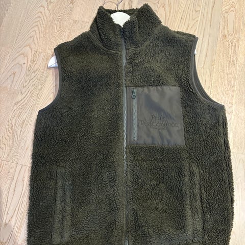 J. Lindeberg Patrik Pile Fleece vest for herre i størrelse M. Vest i grønn pile-fleece. Modellen har høy krage og hel glidelås i front.