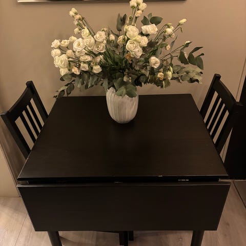 Lite sort kjøkkenbord med 2 stoler selges